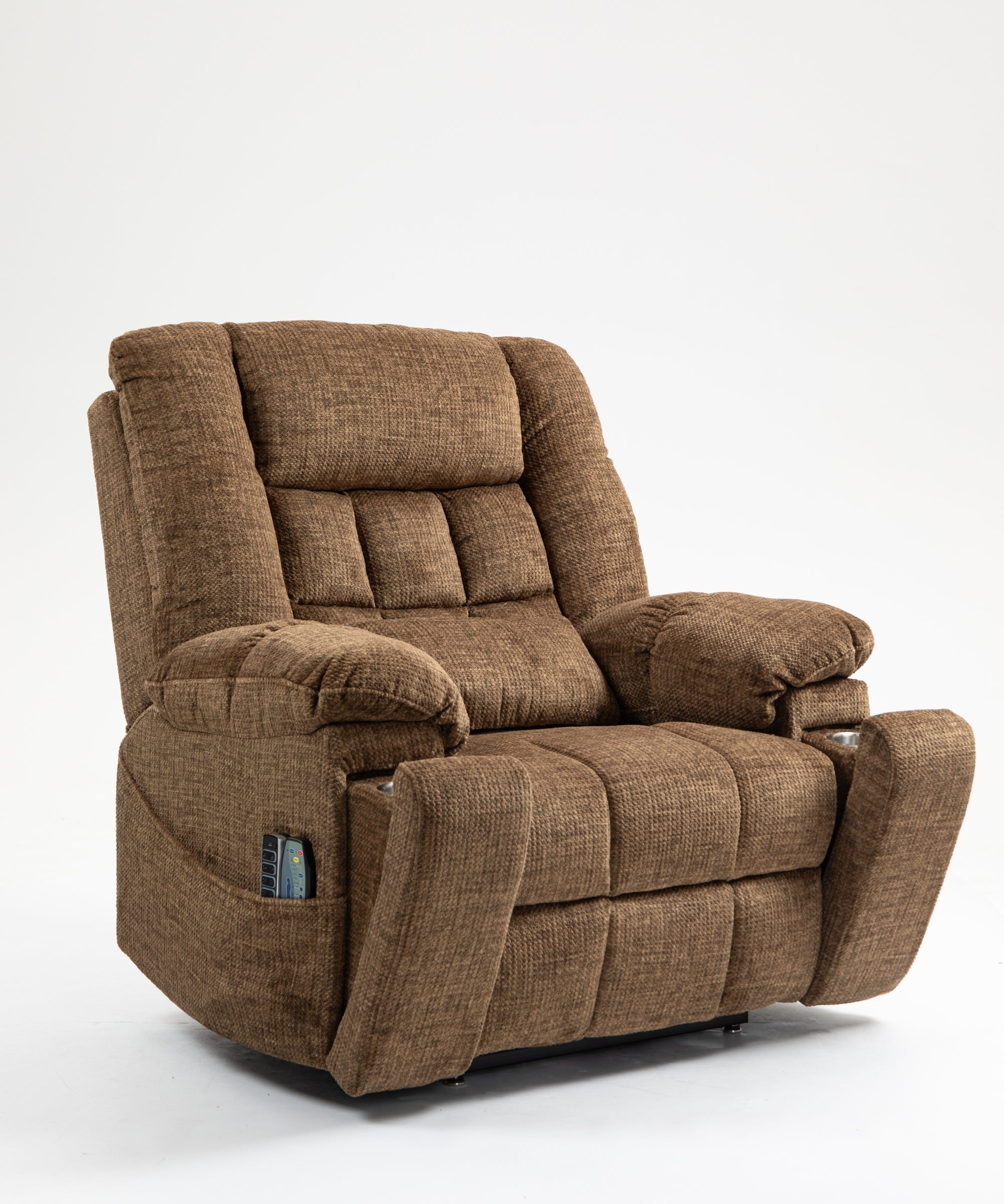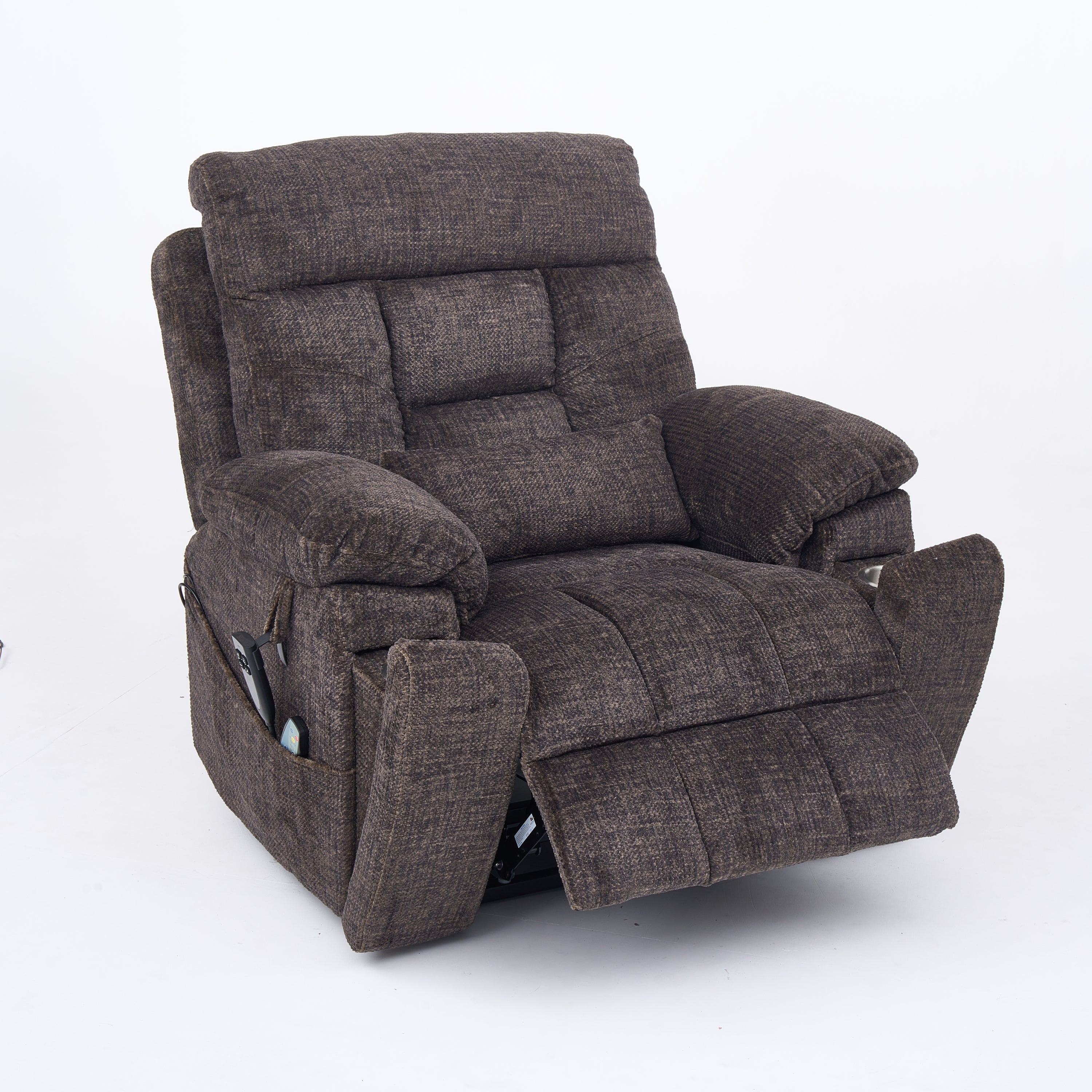 Up to 350 LBS Chenille Power Lift Recliner Chair, Heavy Duty Motion Mechanism with 8-Point Vibration Massage and Lumbar Heating, USB and Type-C Ports, Stainless Steel Cup Holders, Brown